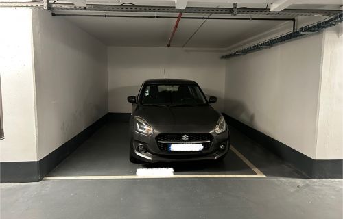 Grande place de stationnement souterrain PMR adaptée aux SUV et aux minivans, située dans le quartier Rosiers - Marché aux Puces.