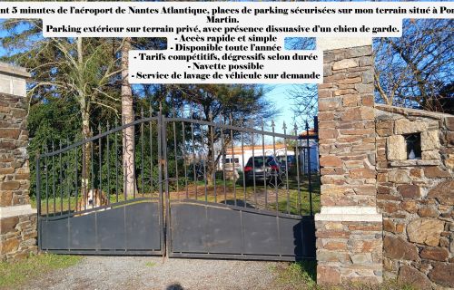 Je mets à disposition des places de parking sécurisées sur mon terrain situé à Pont-Saint-Martin, à seulement 5 minutes de l’aéroport de Nantes Atlantique.