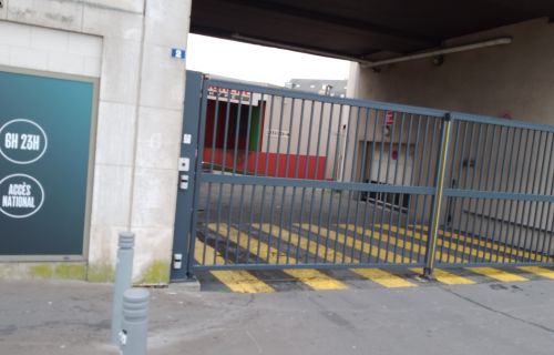 Il s'agit d'un parking en bordure de centre-ville accessible par un badge.