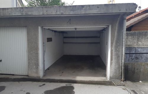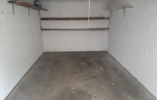 Garage avec prise electrique et lumière, surface de 15 m2 environ.